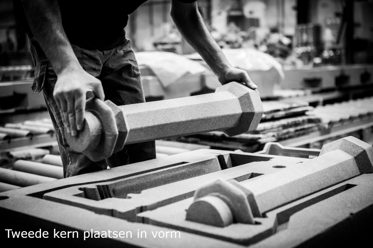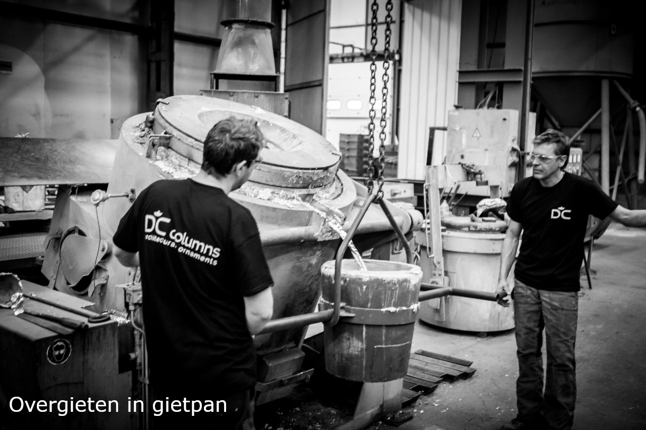 Wij produceren onze kapitelen, voetstukken en ringen met behulp van dit proces, de schachten zelf worden geëxtrudeerd.